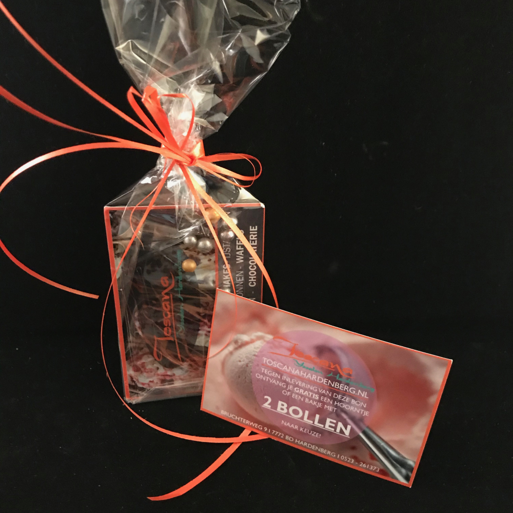 Geef je kanjer een ijsmomentje kado! Deze bon heeft een waarde van 2 bolletjes; te besteden bij Toscana IJssalon & Chocolaterie Hardenberg
